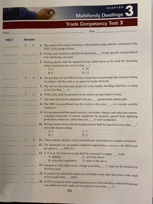 Solved Chapter 3 Multifamily Dwellings Trade Competency Test Chegg Com